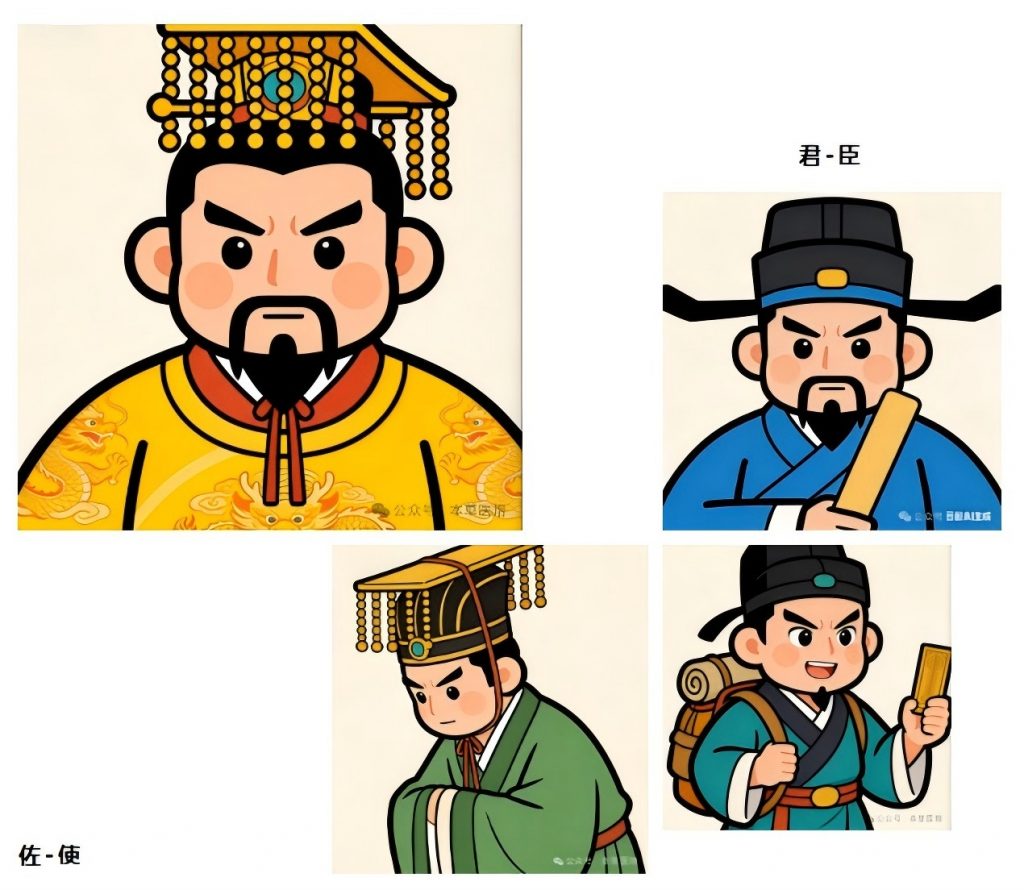 “君臣佐使” 最初是中国古代封建官僚体系的层级概念---君为主导,臣为辅助,佐为补充,使为联络调和,体现 “主从有序、协同运作” 的治理逻辑。