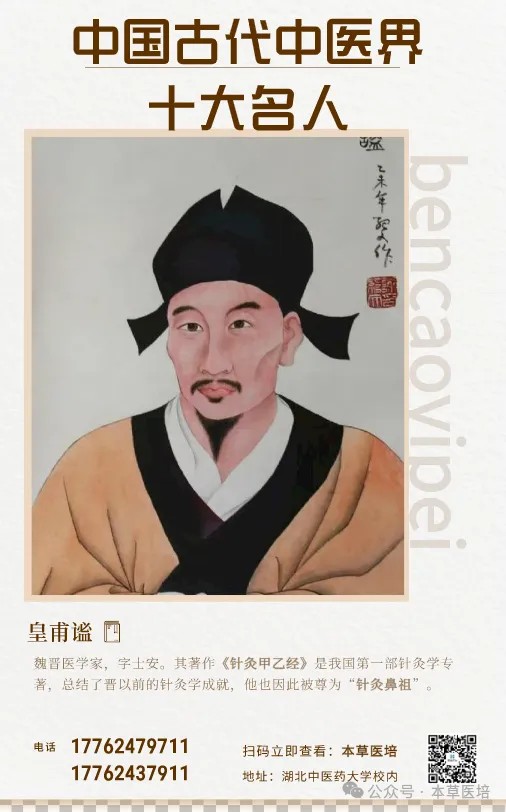 西晋医学家,著有《针灸甲乙经》,是中国现存最早的针灸学专著。他系统整理了古代针灸文献,规范针灸穴位的名称、定位和操作方法,奠定了针灸学的理论基础,被称为“针灸鼻祖”。