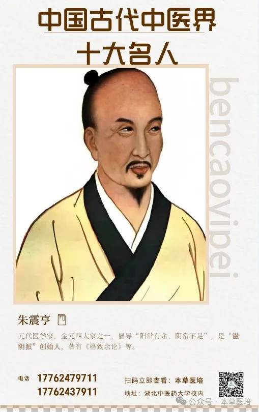 元代医学家,金元四大家之一,著有《格致余论》,创立“滋阴派”。他提出“阳常有余,阴常不足”的学术观点,主张用滋阴降火的方法治疗疾病,擅长治疗内伤杂病,其学术思想丰富了中医的病因病机理论。