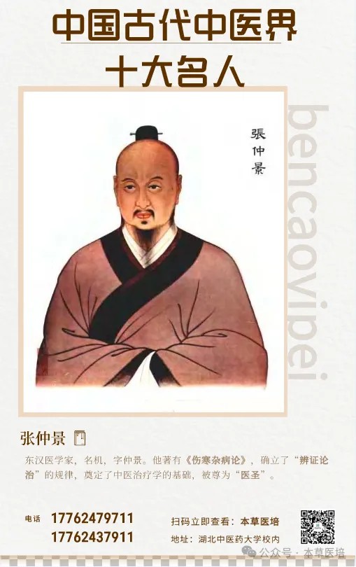 东汉末年医学家,著有《伤寒杂病论》,确立中医“辨证论治”的核心原则,是中医临床的经典著作。他系统总结了东汉以前的医学成就,对伤寒病和杂病的诊治提出完整的理论体系,被尊为“医圣”。