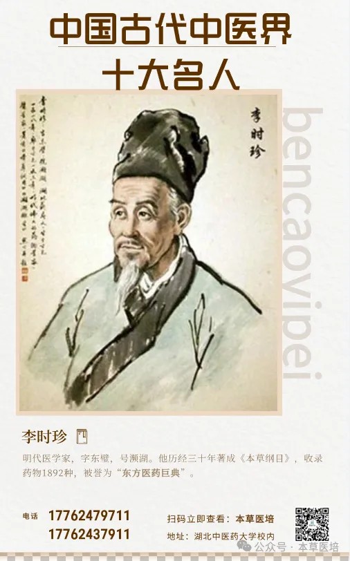 明代医学家、药物学家,历时27年编撰《本草纲目》,全书收录药物1892种,附药图1109幅,药方11096首,是中国古代药物学的集大成者。